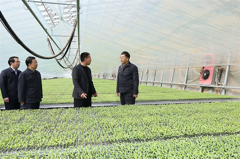 3月15日,省委书记刘宁到安阳市内黄县龙庆街道育苗工厂,调研设施农业发展情况。记者 董亮 摄